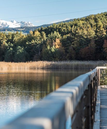 Der Naturlehrpfad Raier Moos in Raas lädt zu einem spannenden Spaziergang durch eines der schönsten Feuchtgebiete Südtirols ein. Entlang des ausgeschilderten Rundweges können Sie seltene Pflanzenarten entdecken und die vielfältige Vogelwelt des Moorgebiets beobachten. Informative Tafeln geben Einblicke in die ökologische Bedeutung des Biotops und seine einzigartige Lebensgemeinschaft. Der in den Teich ragende Steg und der im Wald verborgene Hochsitz laden zum Verweilen und Beobachten der seltenen Tier- und Pflanzenwelt ein.